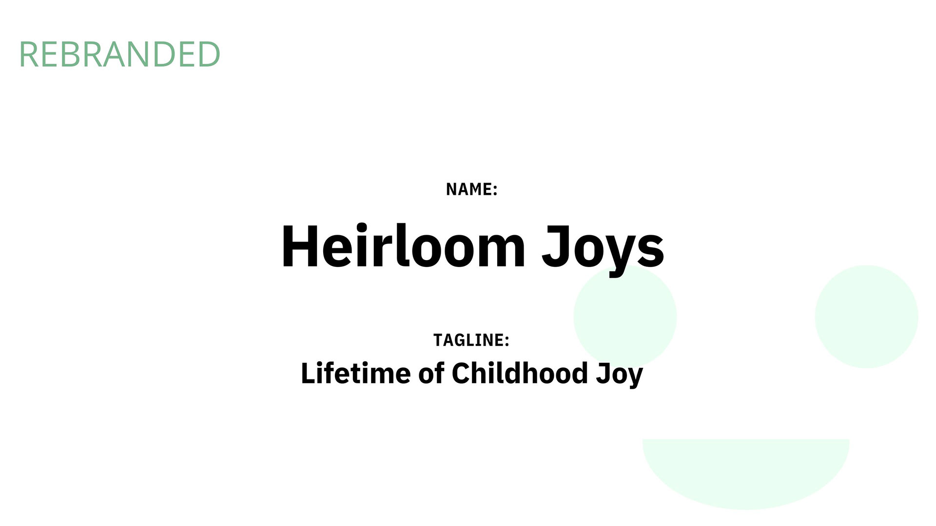 Based on my research of The Baby Penguin's existing branding and that of its direct competitors, I decided to rebrand the company under the name "Heirloom Joys." The name was chosen to reflect the company's core values. "Heirloom" signifies items passed down through generations, embodying both the family and sustainability aspects of the brand. "Joys" speaks to the happiness that the company's sustainable and enriching toys bring to both the children who play with them and the families who purchase them.