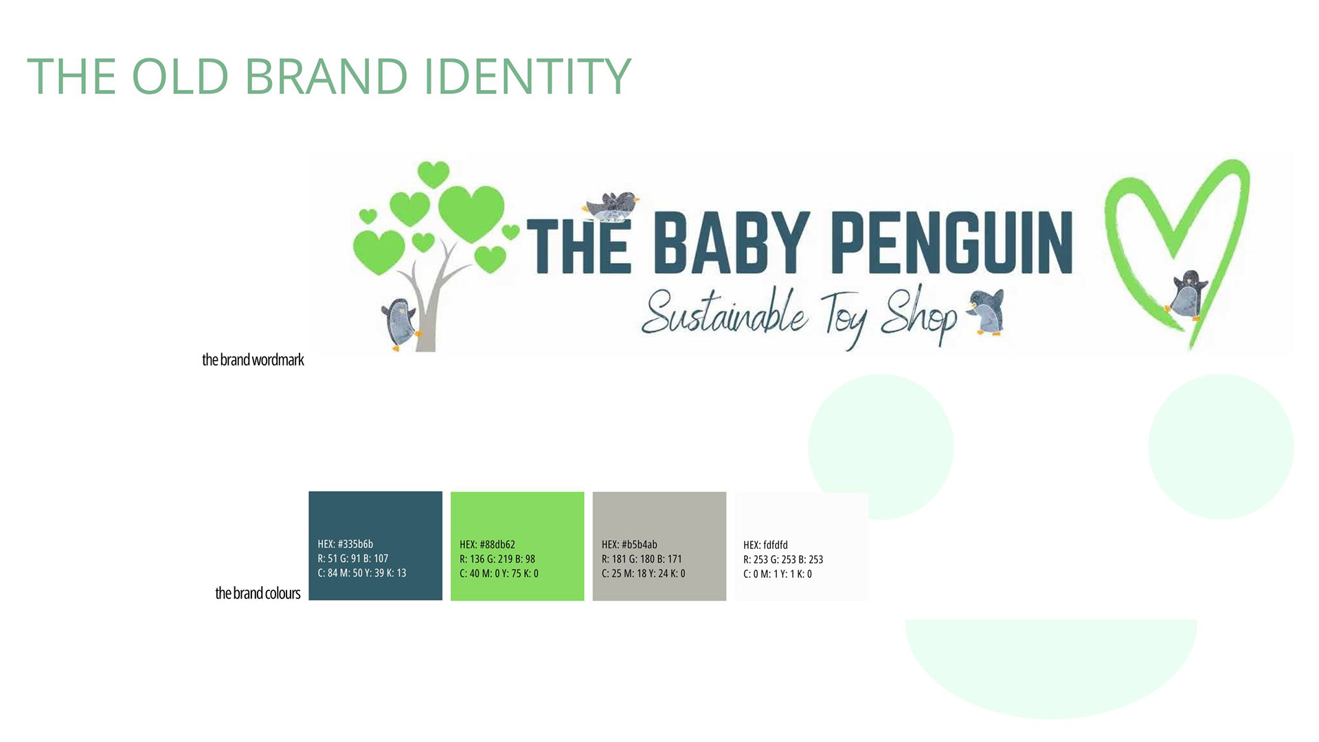 The Baby Penguin is a company dedicated to selling sustainable and timeless toys that align with its core values of family and environmental responsibility. Despite its admirable mission, the company's current branding lacks the impact needed to stand out from its competitors, necessitating a rebranding of its identity.