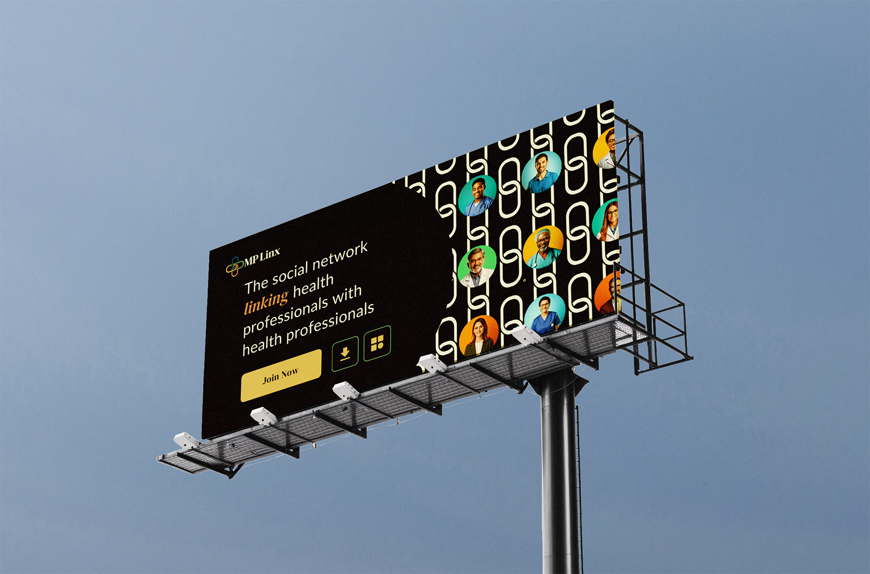 When designing the branding for MP Linx, the concept I focused on was the platform helping health professionals connect (link) with each other. As such, a chain link imagery was used. Additionally, the platform was for health professionals, so a medical cross was incorporated into the chain link logo. A classy serif typeface was used to capture the aspects of professionalism, expertise, and dependability of health professionals.
