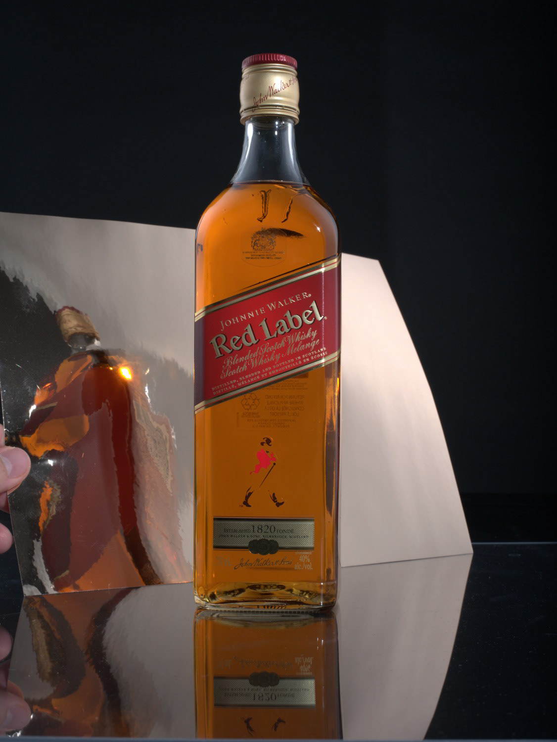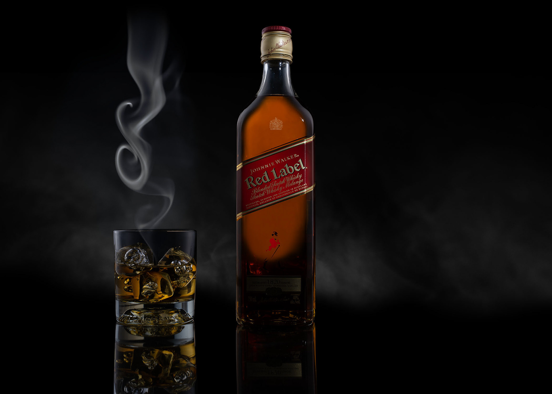 To create the composite image, I combined two separate photographs of a Red Label bottle. The first photograph had darker tones, while the second had lighter tones. Layering these two images allowed me to achieve a greater sense of depth and, more importantly, to highlight the bottle label. I deliberately extended the lighter-toned areas further from the bottle's label to ensure the lighting of the composite image appeared more realistic and believable. Finally, I added a cup to introduce a human element, subtly suggesting that the whisky is ready to be consumed and enjoyed.
