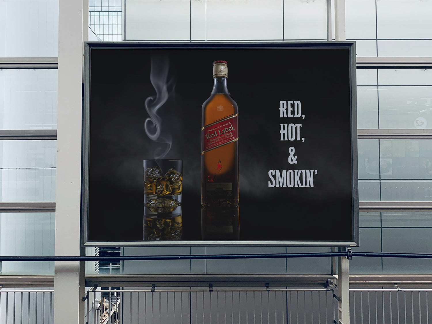 After some research on the Johnnie Walker brand and its Red Label product, I chose to focus my design on the Red Label whiskey's spicy and smoky flavor profile. These elements are a consistent characteristic across the Johnnie Walker portfolio and lend a mature, sophisticated intensity to the brand.